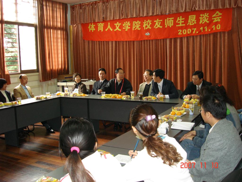 作为庆祝我院55周年华诞活动之一的体育人文学院校友师生恳谈会于2007年11月10日上午在体育理论教研室报告厅举行。恳谈会邀请了我院胡爱本教授、徐昌豹教授、李建国教授、张林教授等一批权威专家、体育人文社会学资深博导。 各位专家教授结合自身的经历与感受,从上海体育学院发展的历史回顾到今天的学院飞速发展,从体育人文学科的建设到学科未来的展望,专家教授们精辟的语言、论古纵今的视野让参加恳谈会的体育人文学院教师、体育人文社会学博士、硕士研究生代表在更多的了解了上海学院的艰辛、奋斗和辉煌的历程。在领略了各位专家的睿智和风采,感悟到了知识就是力量的心灵震撼,也更为深切地感受到作为上体人的光荣和责任,各位与会老师和研究生代表纷纷表示,一定要传承我院拼搏奋斗的历史优良传统、以各位教授为榜样,化责任为动力,为上海体育学院明天的更加辉煌而不懈努力。