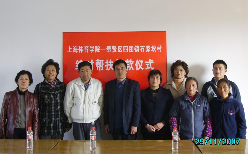 11月29日下午,在学院党委副书记庄起民同志的带领下,由我院党委组织部、后勤服务中心、国际交流中心、研究生学生工作处等相关职能部门的代表组成的爱心慰问团来到奉贤区,代表学院党委与四团镇石家坎村举行了“结对帮扶”捐款仪式,将象征着无私关爱的2万元爱心捐款交到了石家坎村村支部及受助的四个贫困户手中。 捐款仪式上,石家坎村党支部书记朱志君同志首先介绍了该村的具体情况,他代表全村村民向我院自结对以来所给予的各项支持和大力帮助表示衷心的感谢。随后,庄起民副书记代表学院将爱心款交到结扶对象手中。受助的村民感动不已,在致答谢词时声泪俱下,连说了两遍“谢谢共产党!谢谢上海体育学院!”庄书记代表学院向结扶对象表示,今后我院将在扶贫帮困、党员活动、志愿者服务等方面继续加强对石家坎村支持与帮助的力度,努力营造“结对共赢”的良好氛围,把结对活动深入持久地开展下去。