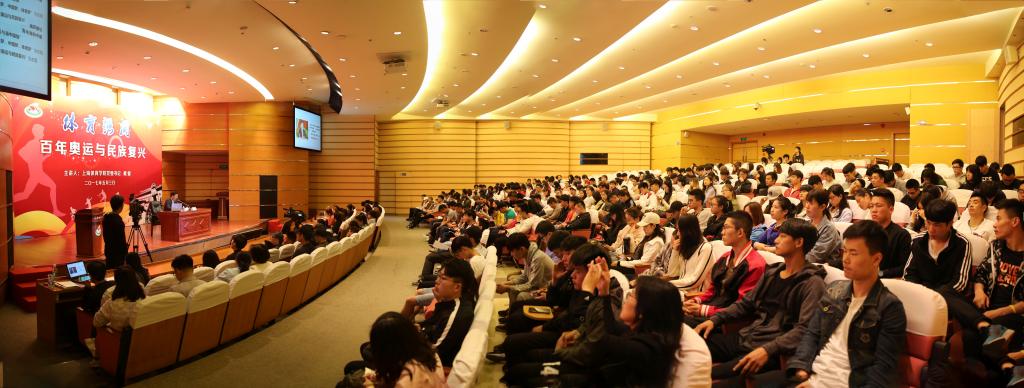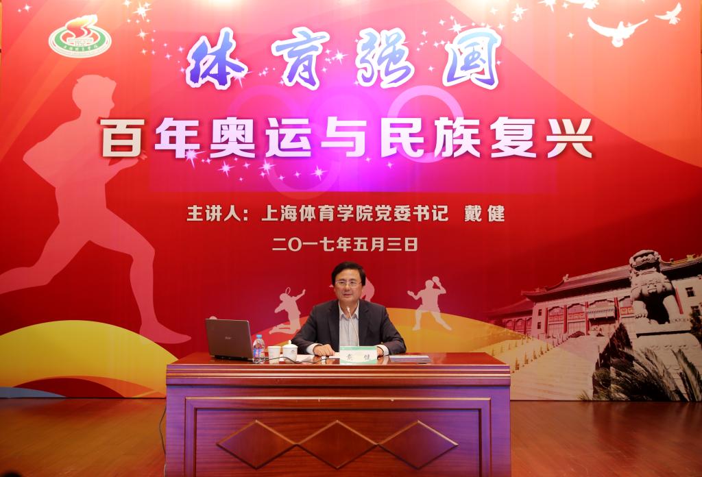 本网讯 5月3日下午,上海体育学院“体育强国”系列课程第一讲在图文信息楼报告厅开讲,党委书记戴健教授主讲“百年奥运与民族复兴”。来自全校300余名学生,部分思政课教师、辅导员和党政工作者聆听了课程。
