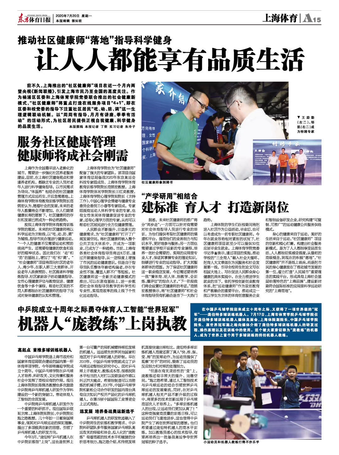 东方体育日报 | 推动社区健康师“落地”指导科学健身 / 机器人“庞教练”上岗执教