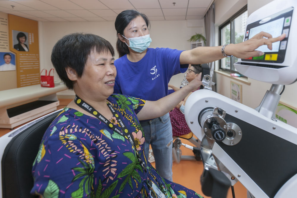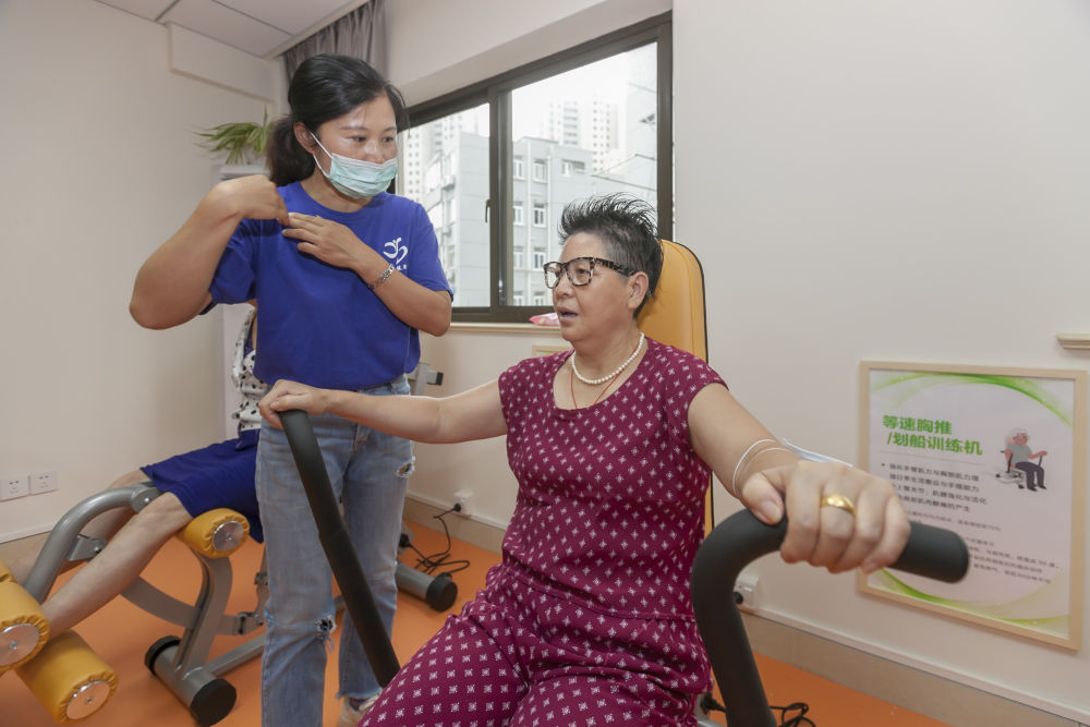 新华社客户端上海7月20日电(记者王翔)7月20日上午,在上海市杨浦区长白新村街道社区综合为老服务中心,一些居民正在社区健康师的指导下使用康复设备锻炼身体,另一些居民则在社区健康师的带领下练习太极拳。如今,越来越多的社区健康师来到基层社区服务站点,为社区居民提供系统化社会服务。